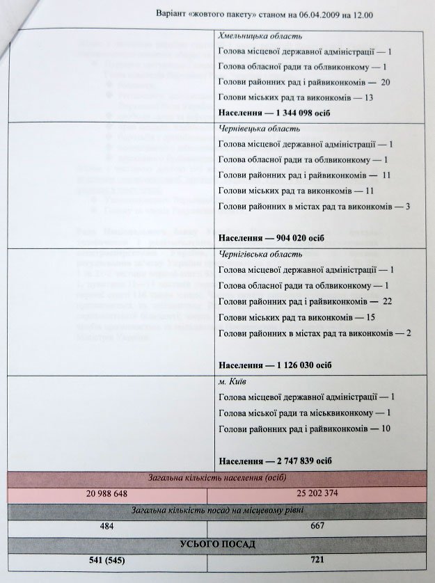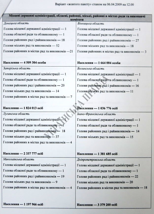 Цікавим є те, як Янукович і Тимошенко ділили владу в областях. За основу бралося не кількість заводів на території, не доходи бюджету, а населення. А наприкінці писали: під Януковича йде 23 мільйони душ, під Тимошенко - 22 мільйони.
