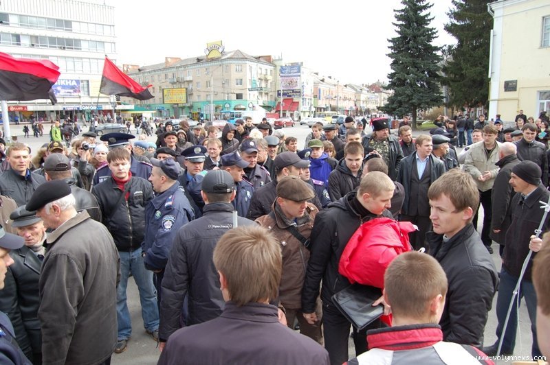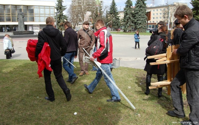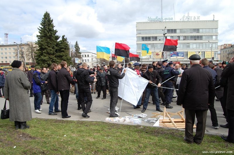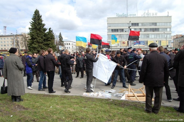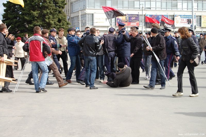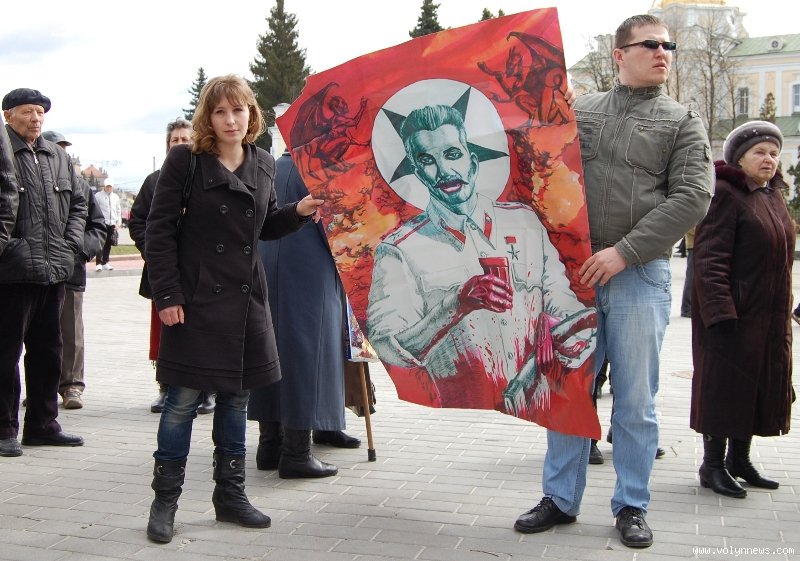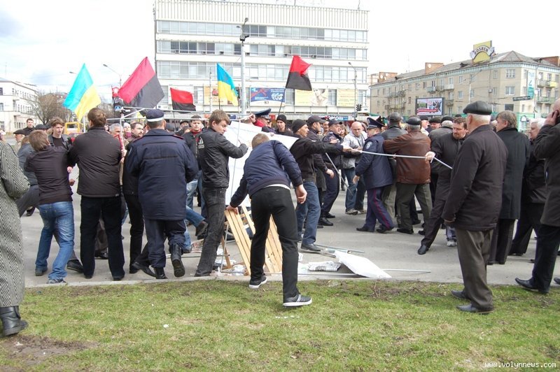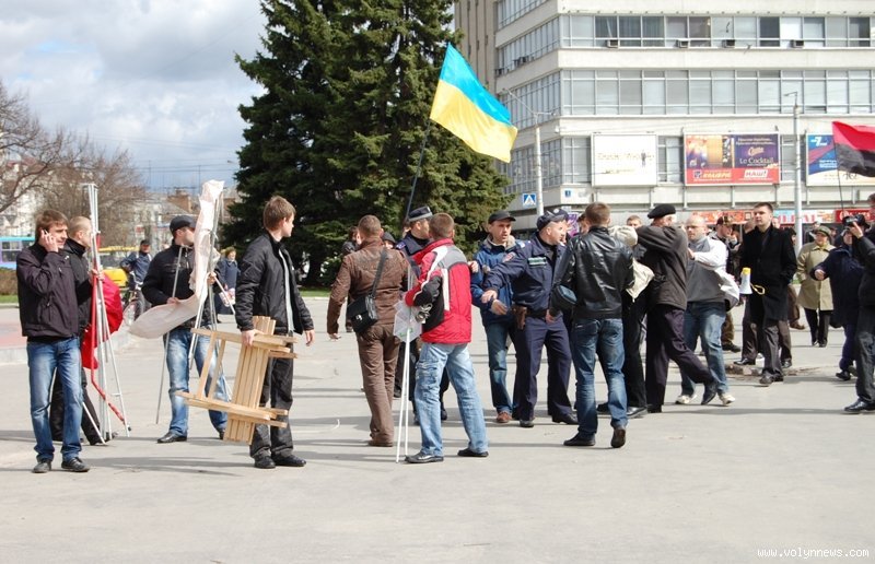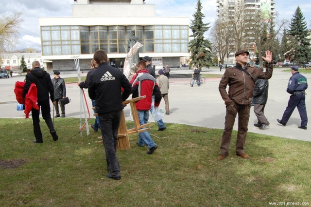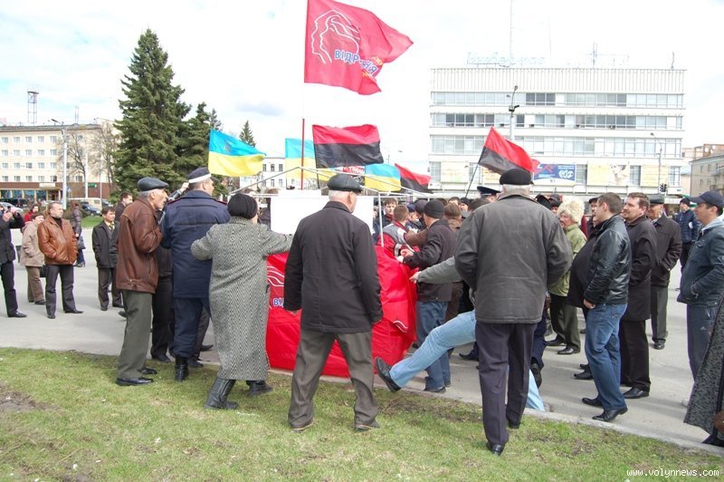 Волинські націоналісти силою та емоціями прогнали з центральної площі Луцька комсомольців, які протягом останнього тижня збирали добровільні пожертвування на відновлення пам’ятника Йосипу Сталіну в Запоріжжі.