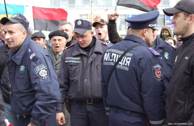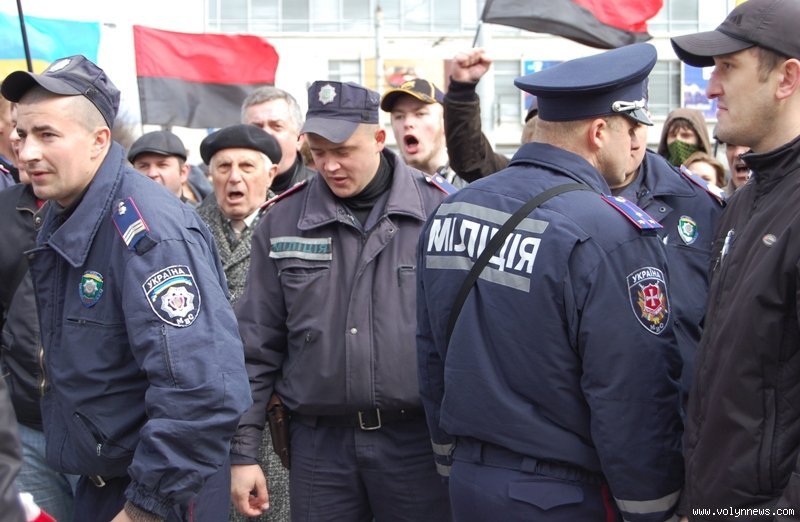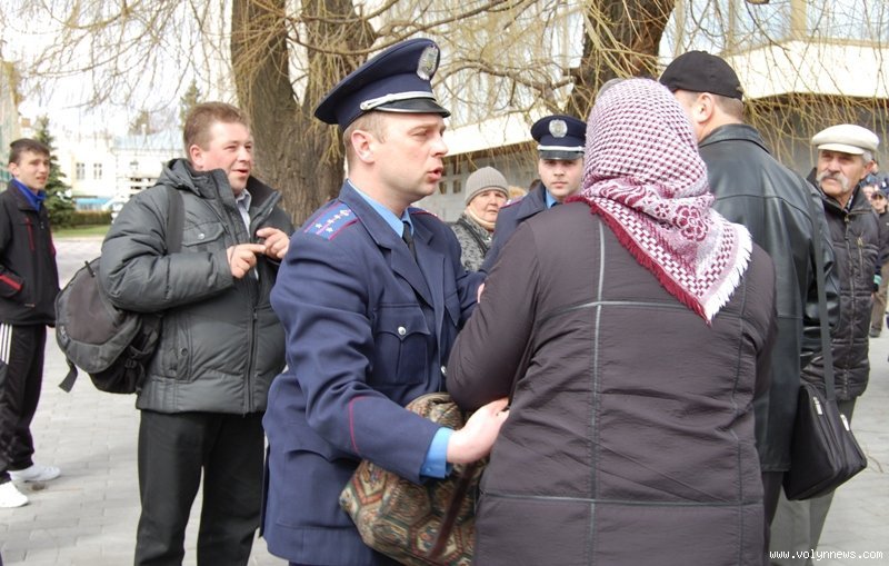 Сьогодні були міліціонери і в формі, і в цивільному. Жалюгідне видовище, коли молодий офіцер міліції пробує застосувати силу проти жіночки похилого віку.