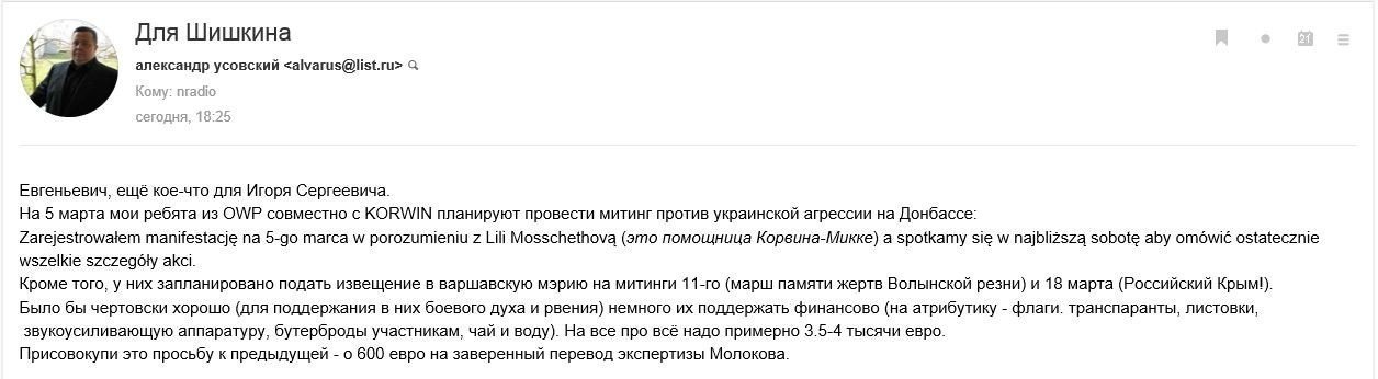 Незабаром, вже всією Польщею прокочуються антиукраїнські акції, а Усовський, тим часом, продовжує зі своєю організацією дестабілізувати ситуацію в Європі.