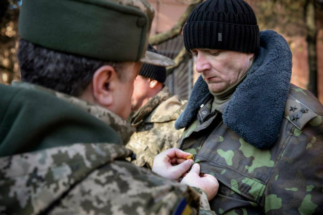 Президент України Петро Порошенко у рамках свого візиту до зони АТО сьогодні, 18 лютого, зустрівся з українськими військовими, які були перегруповані з Дебальцевого, та вручив їм нагороди, - повідомляє "Укрінформ".