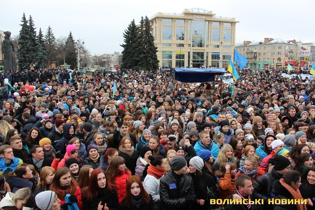 Як розповіла Волинським Новинам у телефонному коментарі прес-секретар Штабу національного спротиву на Волині Юлія Грищук, особисто вона з однодумцями-лучанами у цю мить перебуває на Майдані у Києві. У Жовтневому палаці лучан вже близько тисячі осіб. А взагалі, з четверга, 12 грудня і до сьогодні, за сприяння Штабу, до Києва виїхало близько 5 тисяч мешканців обласного центру.