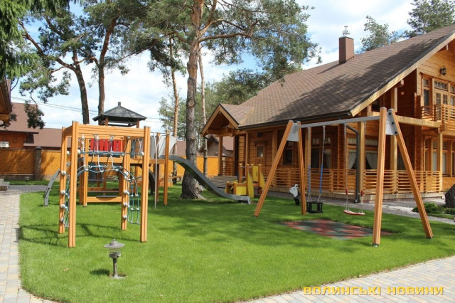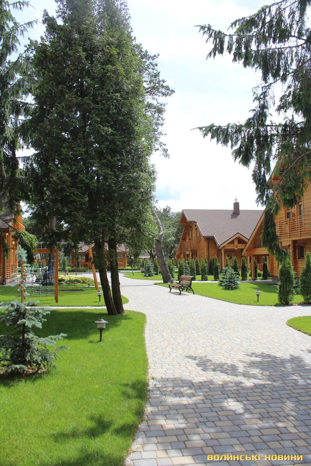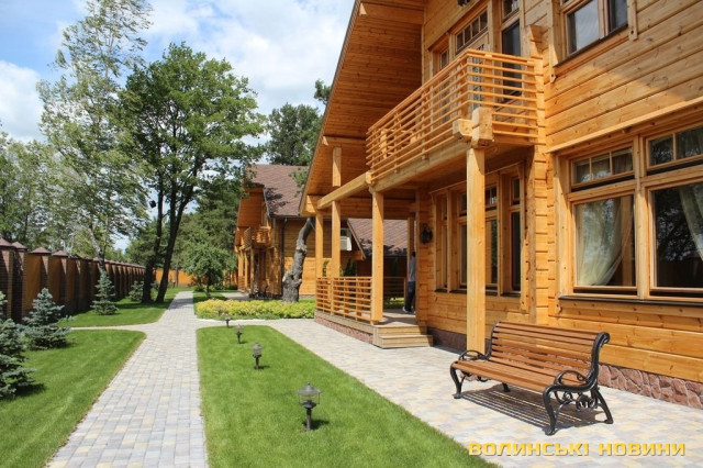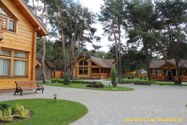 Комплекс відпочинку складається з двох частин: це будинок для охорони та прислуги, у дворі якого розташований вертолітний майданчик, та, власне, котеджне містечко. Загальна площа становить близько 1 гектара.Будинок для обслуговуючого персоналу досить просторий – це двохповерхове приміщення з дорогої деревини. Тут є все необхідне для комфортного проживання: кухня, спальні, плазмові панелі, а також три санвузли.А посеред двору розташований злітний майданчик, оточений охайним газоном. Весь комплекс має свою електропідстанцію.Через дорогу від просторого двору, за високим парканом простягнувся, власне, розважальний комплекс. Його розкоші захоплюються навіть ті, кому вдалось відвідати резиденцію Віктора Януковича в Межигір’ї. Всі будинки і альтанка побудовані винятково з дорогої ексклюзивної «Хонки». Всередині – просторі їдальні, вітальна, спальні кімнати.Люди, які доглядають будинки, стверджують, що з можновладців сюди ніхто й ніколи не навідувався. Кому належить розважальний комплекс вони не знають, мовляв, забудовою і обслуговуванням займається фірма-підрядник, на яку вони і працюють. Як виявилось, в охорони навіть немає ключів від дорогих будинків. Щоправда, крізь вікна можна побачити дорогу стелю та підлогу, масивні люстри, тощо. Вочевидь, будівництво призупинилось на кінцевій стадії – в холі стоять запаковані дорогі меблі, не закінчена робота і над інтер’єром приміщень. Як розповіли місцеві працівники, меблі сюди почали звозити осінню 2013 року.
