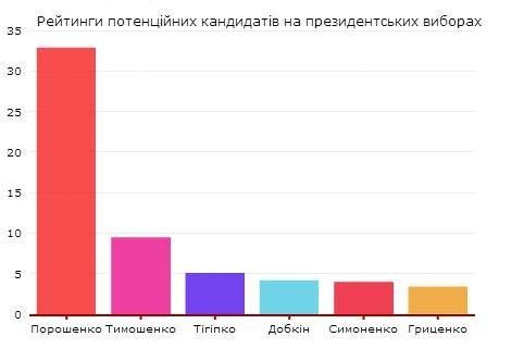 Тігіпко отримав би 7,4% голосів тих, хто визначився, Добкін та Симоненко - 6% та 5,6% відповідно.