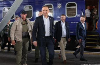Президента Польщі Анджея Дуду помітили на залізничному вокзалі Києва. Він прибув до столиці України з не анонсованим візитом у День Конституції, 28 червня.