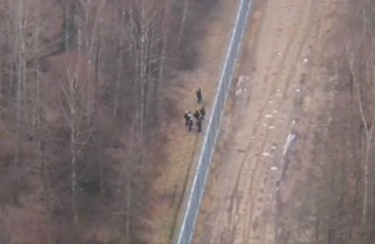 Польські прикордонники опублікували відео, на якому видно, як група нелегалів із рюкзаками на спинах з боку білоруського кордону пробирається лісом у напрямку Польщі. У одного з чоловіків на спині розкладні драбини.