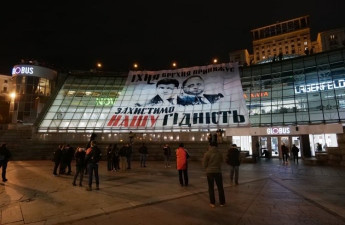 «Їхня брехня принижує»: на Майдані розгорнули банер із Зеленським і Єрмаком