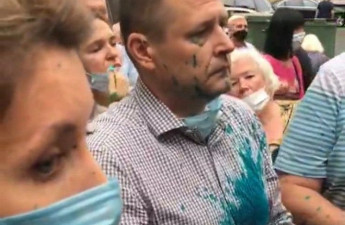 У Дніпрі під час зустрічі із мешканцями лівого берега, міського голову Бориса Філатова облили зеленкою