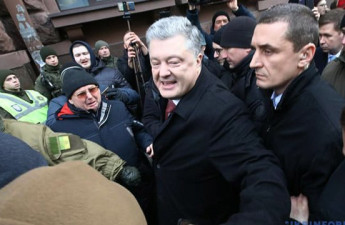 Порошенко з плакатами і «групою підтримки» прийшов у ДБР
