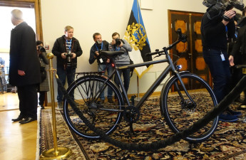 Зеленському в Естонії подарували іменний велосипед і банку меду