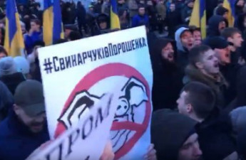 Нацкорпус прийшов на мітинг президента. Порошенко назвав їх «негідниками»