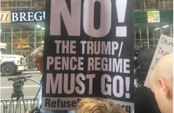 У Нью-Йорку сотні демонстрантів 14 серпня вийшли на акцію протесту до Trump Tower, аби виступити проти президента США Дональда Трампа в зв'язку з зіткненнями в штаті Вірджинія, в ході яких постраждало понад 30 осіб