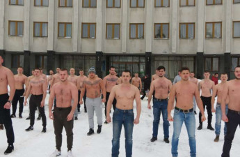 Громадське формування «Варта порядку» сьогоднішньою акцією завершило соціально-корисний флешмоб - # 22 Pushup Challenge. 22 мужніх красені віджималися на площі перед приміщенням обласної ради