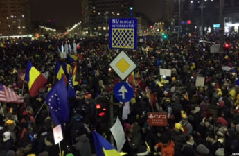 Десятки тисяч людей вийшли на вулиці Бухареста на 13-й день протестів за відставку уряду і проти корупції. На площі Перемоги у столиці Румунії 12 лютого протестувальники розгорнули великий прапор з триколором Румунії – червоним, жовтим і синім.