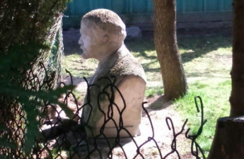 ФОТОФАКТ: У Луцьку на приватному обійсті за кущами зачаївся Ленін