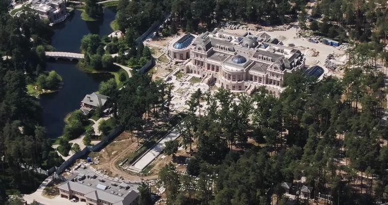 «20 га лісу, за парканом штучні озера з містком, кілька будинків, у центрі — велетенський симетричний палац. Кілька гаражів, альтанки, фігурні доріжки. Будівництво ще не завершено, на території працює техніка, стоять вагончики й будматеріали», — йдеться в сюжеті.