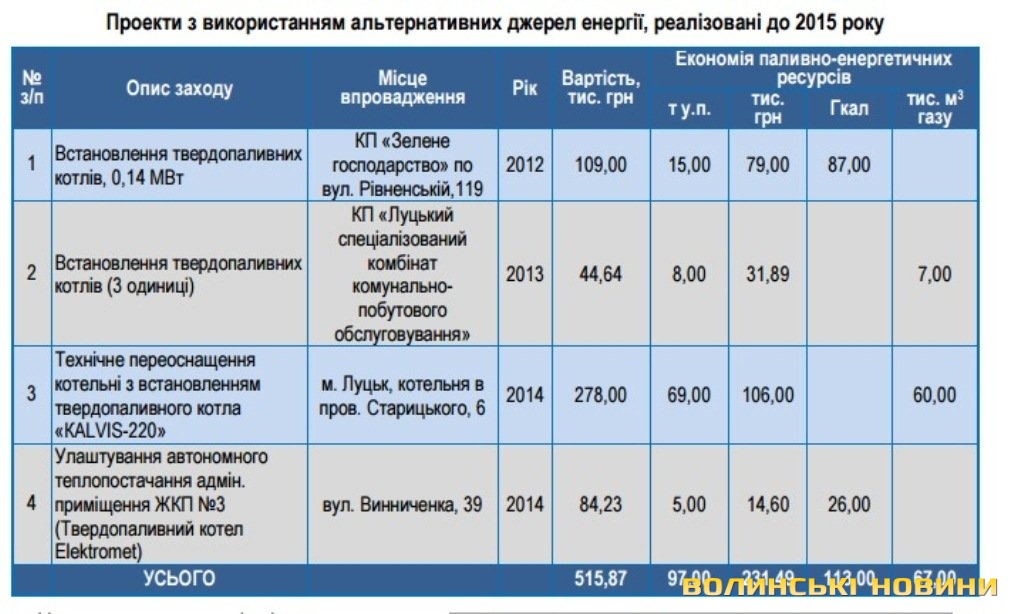 У ПДСЕР, своєю чергою, вказані перспективи використання «зеленої енергії» для Луцька. так, до 2015 року проекти з використанням альтернативних джерел енергії стосувалися заміни котлів на твердопаливні. Це один з варіантів заощадження енергії для міста.А ось аналіз можливостей використання енергії вітру, сонця в Луцьку наступний. Середня швидкість вітру в Луцьку – 3,6 метра за секунду. А економічно доцільна швидкість вітру для встановлення вітрогенераторів 5 метрів за секунду. Тож потенціал енергії вітру для Луцька - незначний.