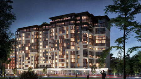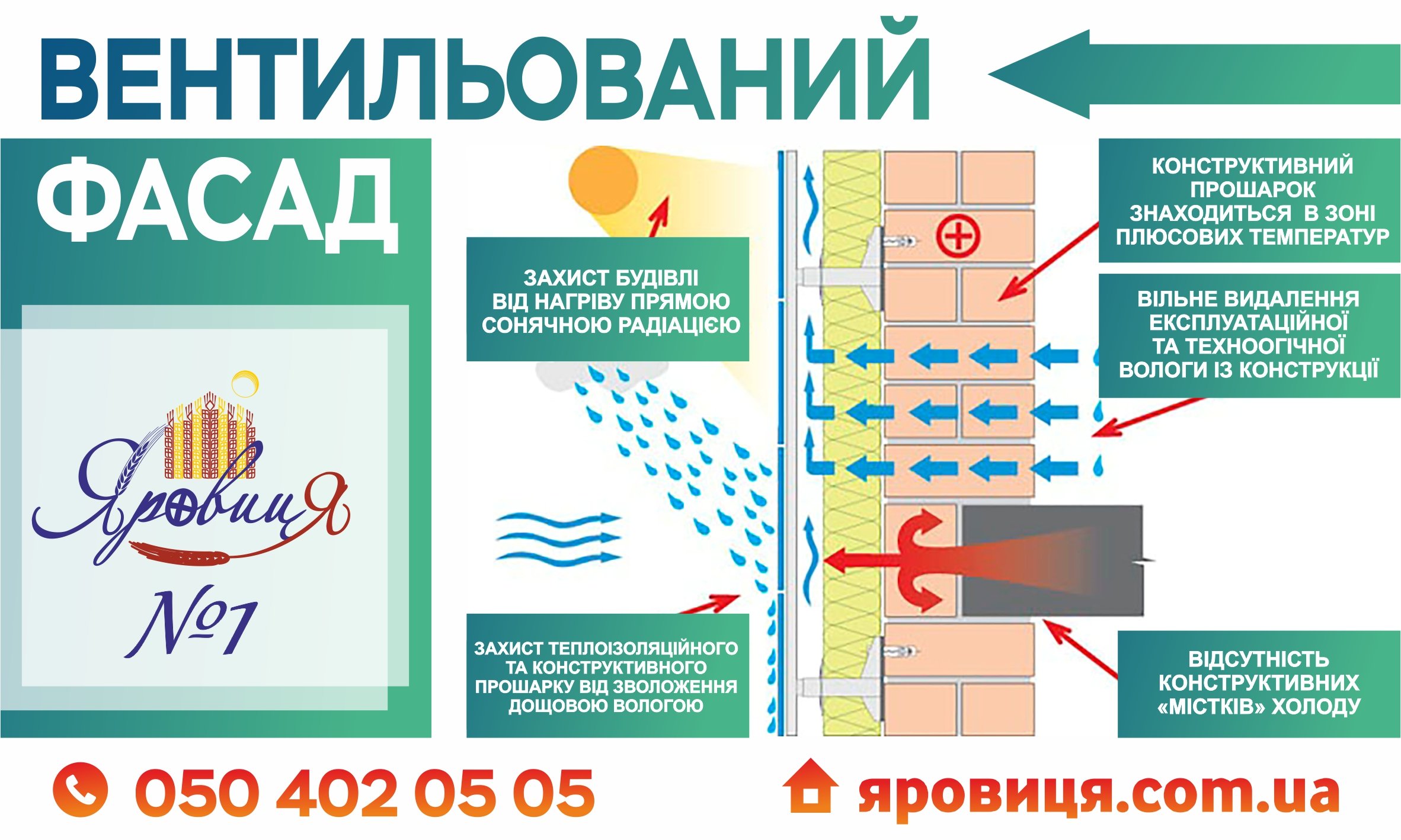 На відміну від уже зведених будинків, які оформлені класично – облицювальною цеглою, житловий комплекс «одягнеться» у сучасну систему вентильованого фасаду в стилі «CUBE». Це одне з найбільш продуманих рішень, що поєднує естетику і практичність. Вентильована фасадна система складається з основних елементів – облицювання (алюкобонд), теплоізоляції та алюмінієвих блоків. Принцип системи полягає в тому, що технологічний прошарок, що залишається між теплоізоляцією і облицюванням, забезпечує вільний рух повітряних потоків. Природний рух повітря в цьому прошарку (ефект каміна) не дозволяє збиратися конденсату і волозі і є свого роду буфером, що значно знижує тепловтрати. Фасад такого типу є значно енергоефективнішим та довговічним.