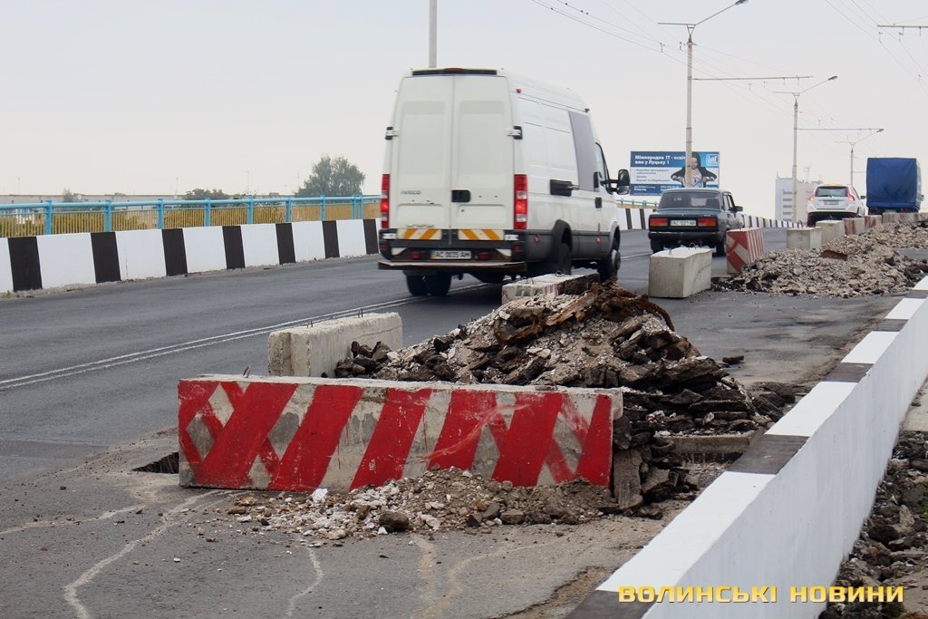 «Ми затрималися з виконанням робіт через те, що департамент житлово-комунального господарства вирішив провести фрезерування дорожнього покриття та покласти новий асфальт, а це не наша робота, ми ремонтували шви та встановлювали колесовідбійники», - каже Володимир Рицай.На питання журналістів Інформаційного агентства Волинські Новини, коли з мосту буде прибрано будівельне сміття та бетонні блоки, що ускладнюють рух, підрядник відповів, що це питання 3-5 робочих днів.