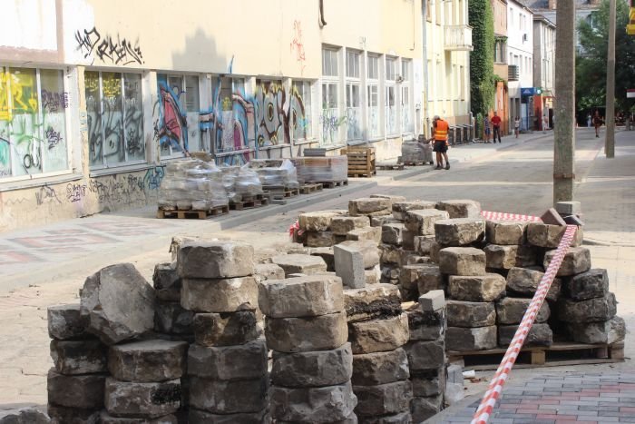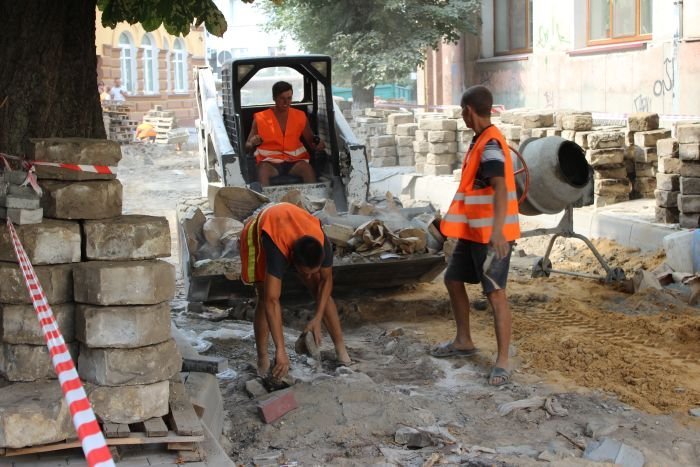 Тепер «трилінку» знімають, відбирають вцілілу для подальшого використання. Після цього вирахують, на скільки вистачить старої бруківки і внесуть корегування у проект.