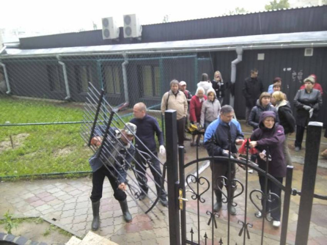 А чоловіки, які сиділи в прибудові, повернулися в неї. Перед тим вони спробували блокувати людей, які розбирали прибудову, але спроба була невдалою.