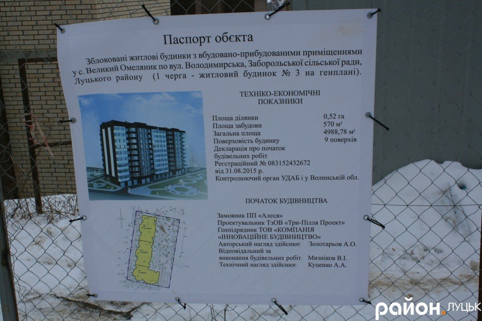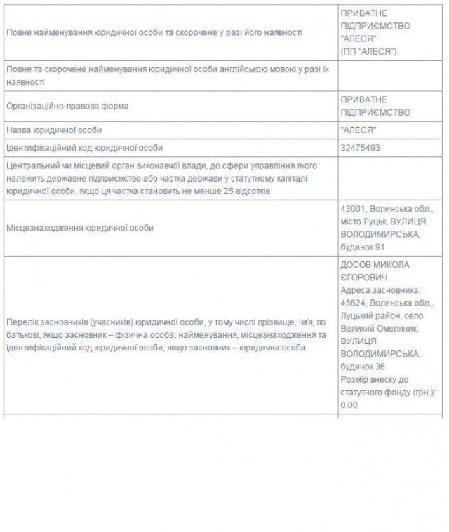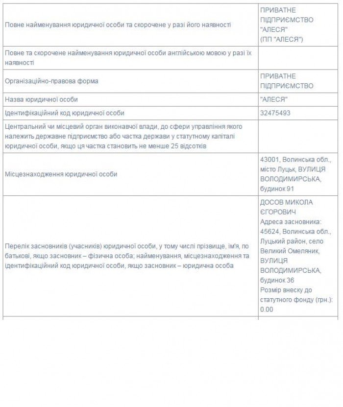 У паспорті вказано, що замовником будівництва є приватне підприємство «Алеся». Із інформації, зазначеної у Єдиному державному реєстрі юридичних осіб, фізичних осіб-підприємців та громадських формувань, дізнаємося ім’я засновника фірми. Ним виявився колишній