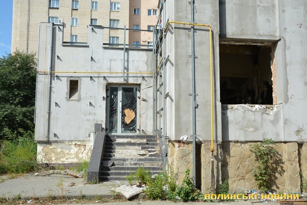 Занедбана споруда розташована поруч з житловими будинками за адресою проспект Молоді, 8а. Це – приміщення колишнього «Альфа-казино». Свого часу внаслідок пожежі це приміщення стало непридатним для експлуатації. І вже декілька років воно стоїть пусткою. Обабіч – два колишні гуртожитки, де мешкає чимало сімей з дітьми.