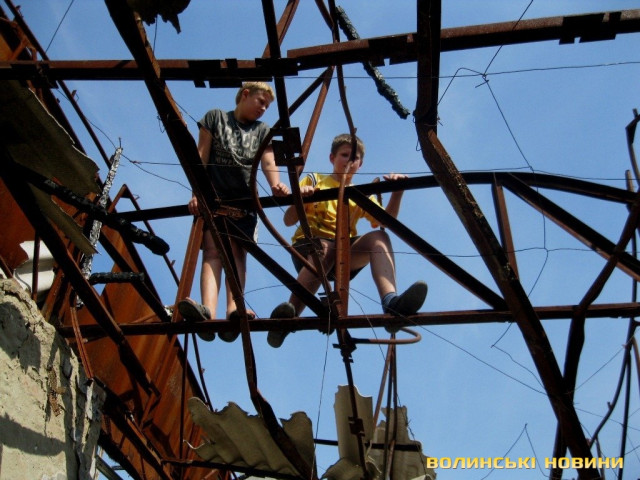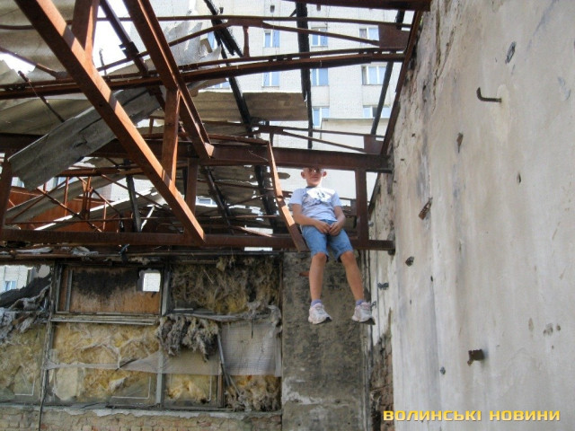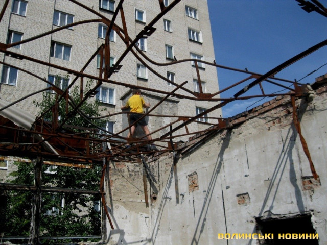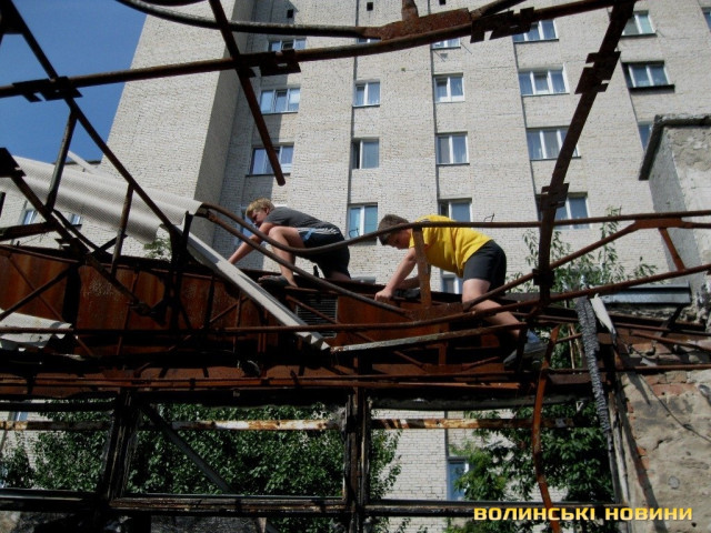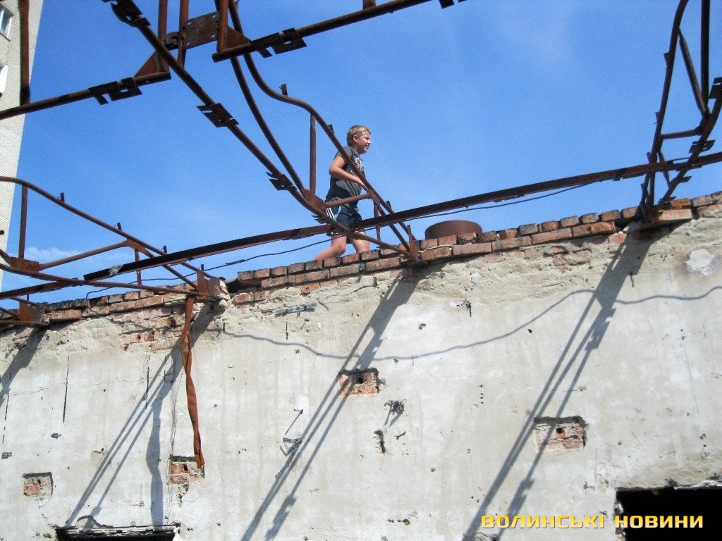 До Інформаційного агентства Волинські Новини звернувся голова ОСББ «Вікторія Луцьк-1» Петро Бойко. Він розповів, що по сусідству з будинком, яким він опікується, стоїть занедбана споруда, де по ночах снують безхатьки, а вдень пригод на свою голову шукає дітвора. Чоловік навіть приніс фотографії того, як там «розважаються» діти.Покручені балки і неприкріплений шифер загрожують упасти на голови непроханих відвідувачів, а ось хто мав би за це відповідати - в міській раді досі не знають.