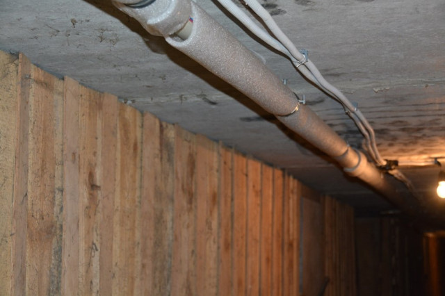 «Якось приходимо із чоловіком з роботи, а у вбиральні стоїть вода. По плитці все зверху стікає до нас, – розповідає пані Ніна. – Стіна, що вкрита грибком, почала видуватися. А коли в домі тиша – чути, як тріщать стіни».Сусідка пані Ніни Вікторія Богач, щоб захистити квартиру від грибка й вологи, звела ще одну стіну.