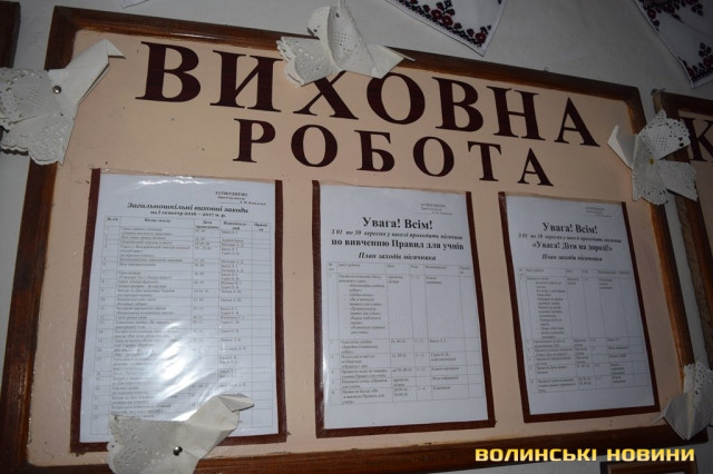 ...Ми заходимо у клас до дев’ятикласників. Урок зарубіжної літератури. Вчитель цього предмету Ольга Кудь працює у школі вже 34 роки. Ольга Василівна показує нам магнітну дошку. Це найновіше, що тут є. «Наша школа хоч уже й старенька, але маємо багато успішних учнів», – каже педагог.Учениці дев’ятого класу Дарина Вовк та Анастасія Рибін зізнаються, що їм хотілося б, аби уроки інформатики проходили за сучасними новими комп’ютерами, аби в школі були додаткові гуртки. Але це аж ніяк не весь перелік проблем сільського закладу освіти.