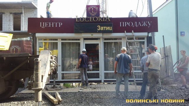 Офіс попереднього продажу квартир житлового комплексу «Luceoria», що по проспекту Волі, з’їжджає на будівельний майданчик. Крім того, будівництво цього житлового комплексу фахівці вважають незаконним та навіть небезпечним.