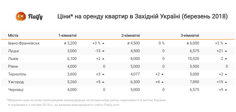 В середньому по Луцьку оренда однокімнатної квартири обійдеться у 3 000 гривень, двокімнатна потягне 4 500. Трикімнатна квартира в Луцьку в середньому пропонується за 6 575 гривень.