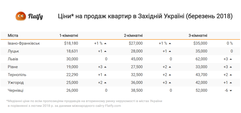 В інфографіці ви можете порівняти ціни на житло в різних містах західної України.