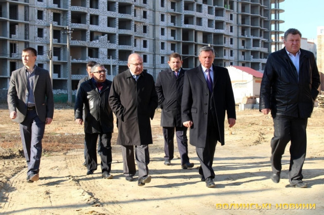 Незавершене будівництво школи №27, що на вулиці Липинського у Луцьку, оглянули голова облдержадміністрації Володимир Гунчик та Луцький міський голова Микола Романюк 6 листопада.