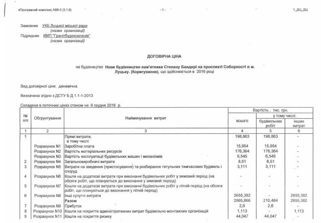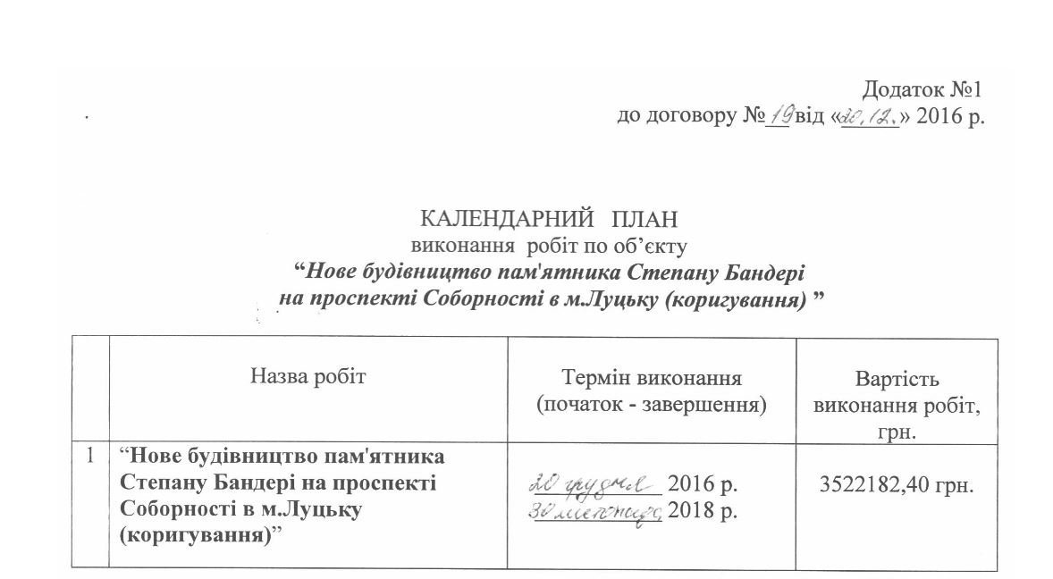 Луцька міська рада уклала договір про будівництво пам'ятника Степану Бандері в Луцьку з колективним малим підприємством «Гранітбудексклюзив».
