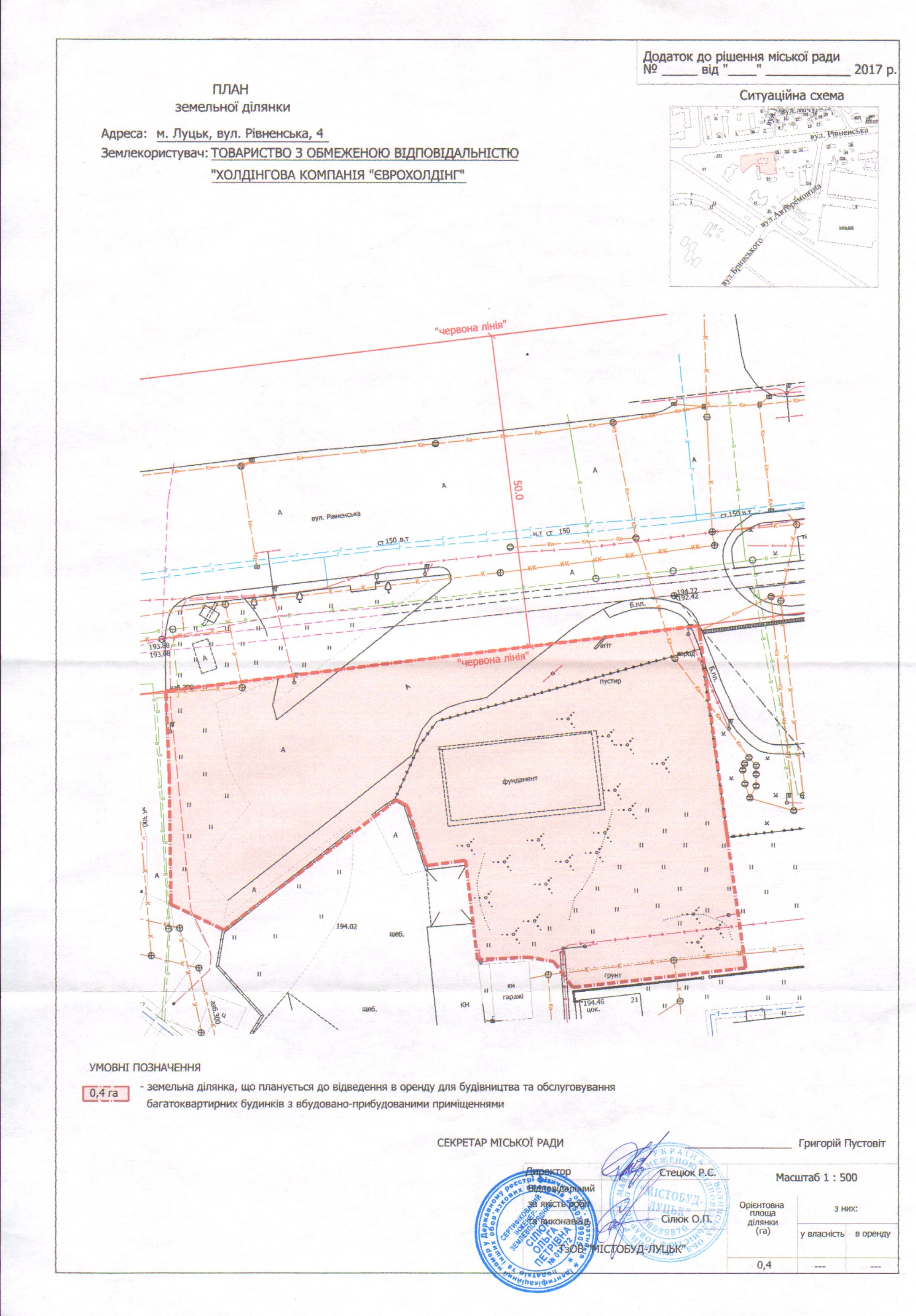 Депутати розглянули проект рішення про надання ТзОВ «ХК «ЄВРОХОЛДІНГ» дозволу на розроблення проекту землеустрою щодо відведення земельної ділянки для будівництва та обслуговування багатоквартирних будинків з вбудовано-прибудованими приміщеннями на вул. Рівненській, 4.