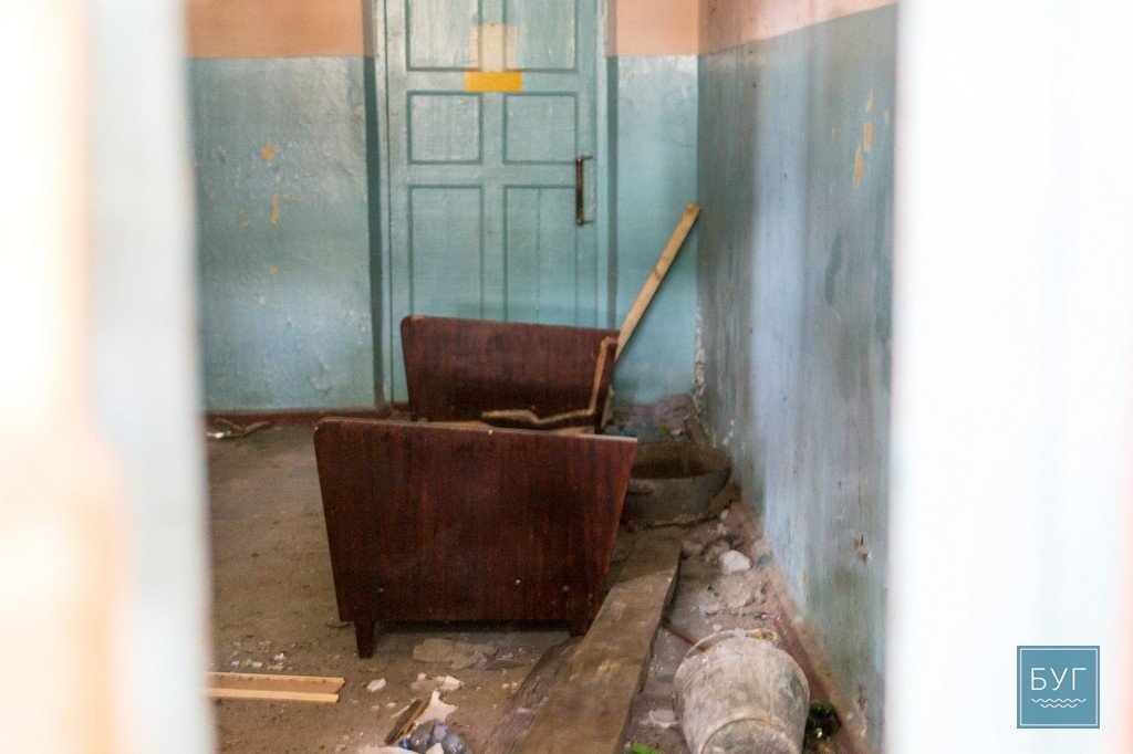 Покинуте приміщення, що знаходиться в п’ятдесяти метрах від селищної ради, здалеку нічим не вирізняється. Поруч знаходиться дитячий майданчик, де граються діти. Проте підійшовши ближче в очі кидається кричуща занедбаність – вибиті вікна, абияк забиті дошками, порожні пляшки, скло. Добре видно, що споруда давно не використовується.