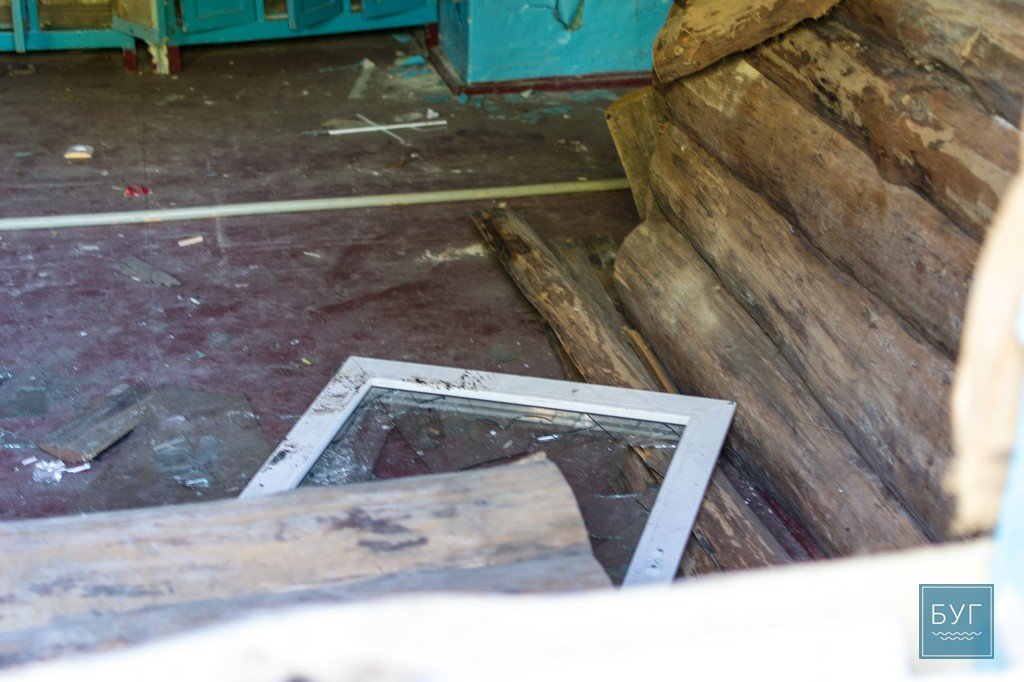Теорія розбитих вікон в дії – після одного вибитого скла з часом не залишилось майже нічого. Навіть пластикові склопакети, які встановлені відносно недавно, винесені подекуди з рамами. Облуплені стіни приклашають “наскельні малюнки”.