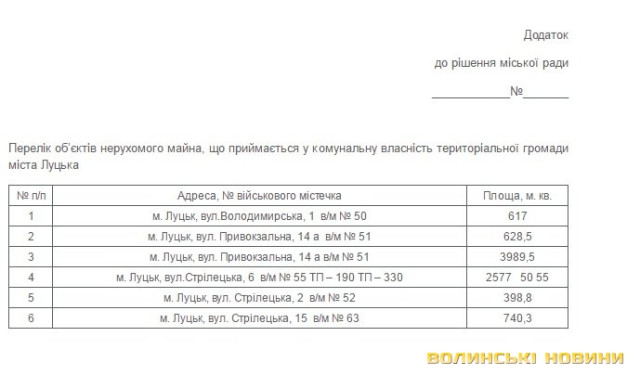 Депутати міськради проголосували за прийняття на баланс шести гуртожитків Міноборони та комунікацій, якими наразі опікується квартирно-експлуатаційний відділ Володимира-Волинського (КЕВ).