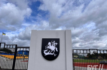 На оновленій огорожі стадіону «Олімп» у Володимирі встановили логотип міста. Спортсмени проходитимуть вже не через старовинний цегляний паркан, а через стелу з символом міста – Юрієм Змієборцем.