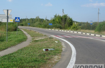 Невідомі понищили дорожні споруди та знаки, які були встановлені на повороті з міжнародної траси Ковель-Ягодин на Любомль
