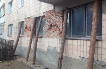 Фасад луцької багатоповерхівки по проспекту Соборності, 33 почав руйнуватися і просідати, а цегла відшаровується. Мешканці будинку впевнені, що до руйнування призвів ремонт однієї з квартир на першому поверсі, де порушили несучу стіну. А ось міські комунальники кажуть, що причина в неякісній цеглі, з якої збудували споруду. Ситуація, кажуть, тривожна