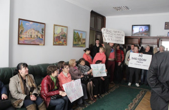 Люди прийшли у Луцьку міську ради з плакатами, щоб їх почули депутати. Вони вимагають, аби зелена зона на розі вулиць Конякіна та Гордіюк набула статусу «парки та сквери», щоб територію не забудовували