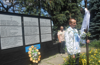 З нагоди 75-ліття трагедії рожищанський декан протоієрей Василь Шняк очолив заупокійну літію перед пам'ятником борцям за волю України