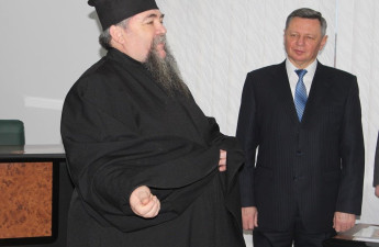Митрополит Луцький і Волинський Михаїл УПЦ КП, разом з іншими духовними отцями, прийшов щедрувати і співати релігійні пісні у Луцьку міську раду