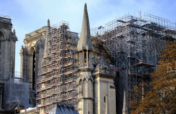 Собор Паризької Богоматері отримав чималі пошкодження через пожежу в 2019-му році. Наразі його обвалений шпиль перебуває на стадії відновлення.