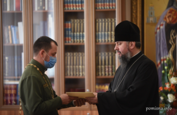 Митрополит Київський і всієї України Епіфаній вручив капеланові Луцького прикордонного загону протоієрею Михайлові Хімчаку медаль Архістратига Божого Михаїла