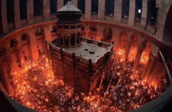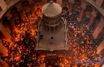 У Єрусалимі відбулася церемонія виносу запалених свічок із Гробу Господнього в Храмі Воскресіння. Вогонь свічок, що символізує воскресіння Христа, у православ’ї називають Благодатним вогнем.