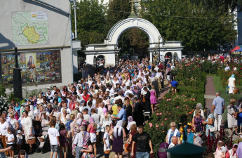 Недільного ранку тисячі вірян зібралися у Свято-Троїцькому кафедральному соборі та на майдані перед храмом, аби освятити плоди