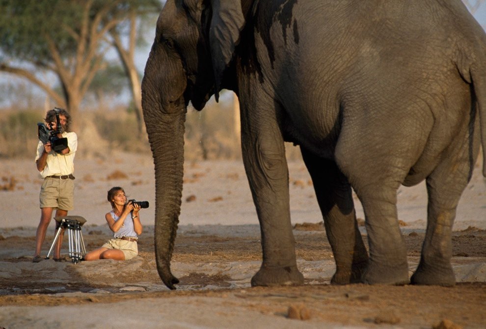 14. Ботсвана, 1994 рік. Знамениті фотографи дикої природи Дерек і Беверлі Жубер (Dereck and Beverly Joubert) фотографують слона з дуже близької відстані в Ботсвані. (Photo by Beverly Joubert)